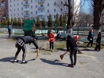 Також 5 квітня у рамках місячника по благоустрою території селища представники технічного персоналу, вчителі та учні нашої школи вийшли на традиційний суботник. Працівниками та учнями школи проведено масштабне прибирання пришкільної території. Весняний вітер і тепло сприяли загальному настрою учасників суботника. Було прибрано територію шкільного подвір`я. Тепер навколо нашої школи чистота і порядок. І в силах кожного учня, щоб вона залишалася такою і надалі.
